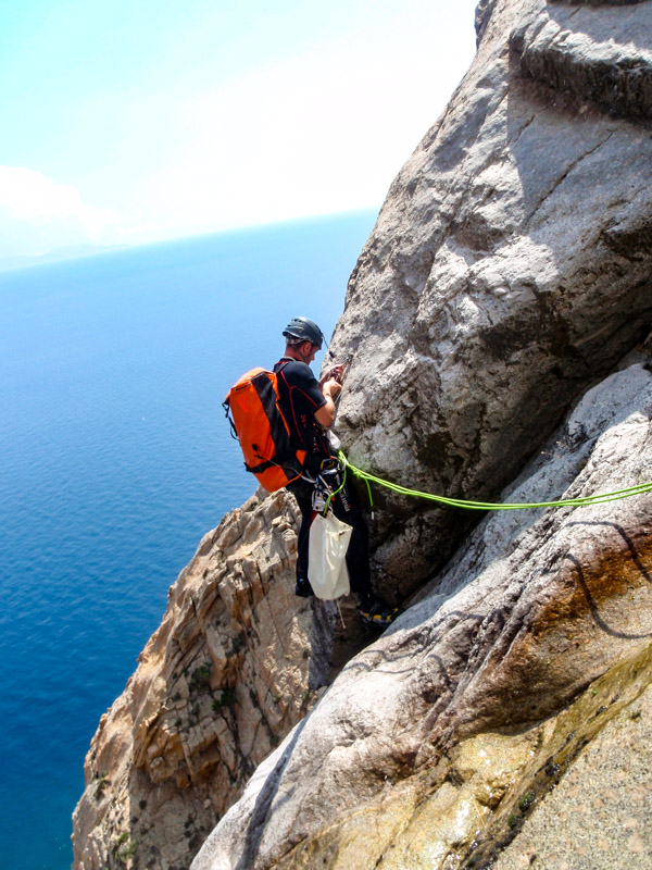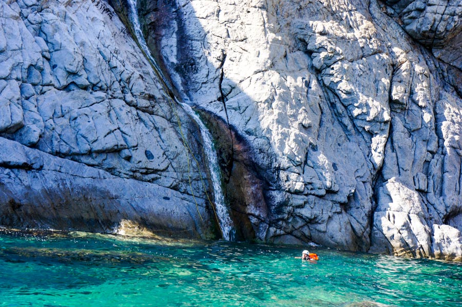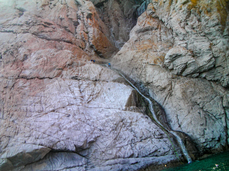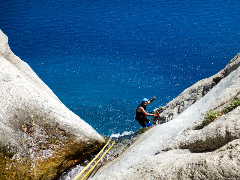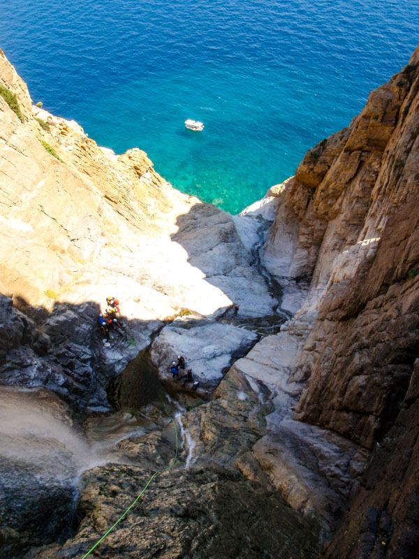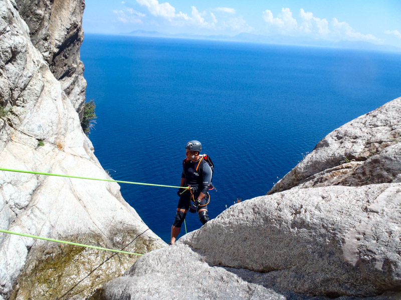 The Kremastos waterfall is located in the southern part of the island of Samothrace and can only be seen from the sea by boat. It is an impressive waterfall to which we have placed anchors and we descend it by making long rappels. The approach is by boat and by hiking for up to 2 hours. The view is impressive and adrenaline is enough!!! The difference in altitude is 230 meters. The activity begins with four successive smaller waterfalls between 15-30 meters until we reach the most vertical point. Until we reach the sea we descend the remaining part of the waterfall with 7 consecutive changes of ropes. The return is by boat. It is a route that will more than satisfy lovers of long descents with ropes.